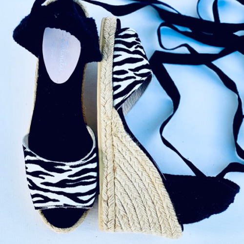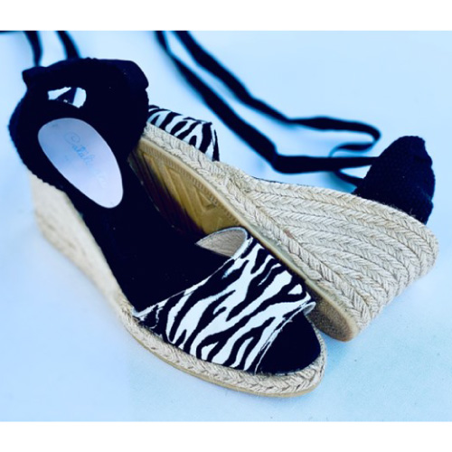 Pala de piel, talonera de yute, cintas algodón.